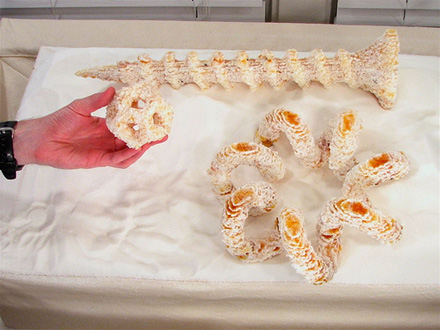 2. To reduce the hazards of working with large amounts of media, non-toxic materials (ideally, food-grade) are used. The prototype CandyFab 4000 unit uses granulated sugar as its print medium, giving rise to its name, but other materials with low melting temperatures and low toxicities are still under consideration.
