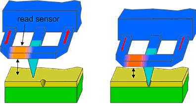 In the thermal-mechanical writing process described above, indentations are created by applying a force on the cantilever.