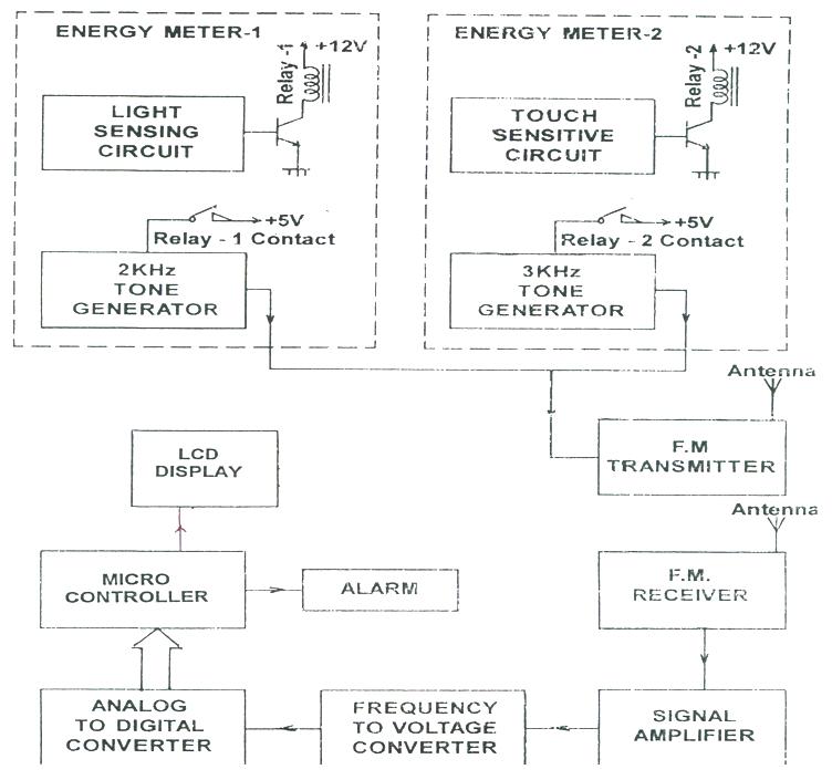 This process can be done by using above block diagram is whenever the consumer try to get the power theft in meters the transmission section which is placed in the smart meters, it sends the signal to the receiver section which is placed at the sub-station, whenever the receiver receives the signal it displays the meter number.