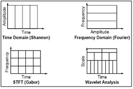 Fig.1. Comparison of FT, STFT and Wavelet analysis of a signal